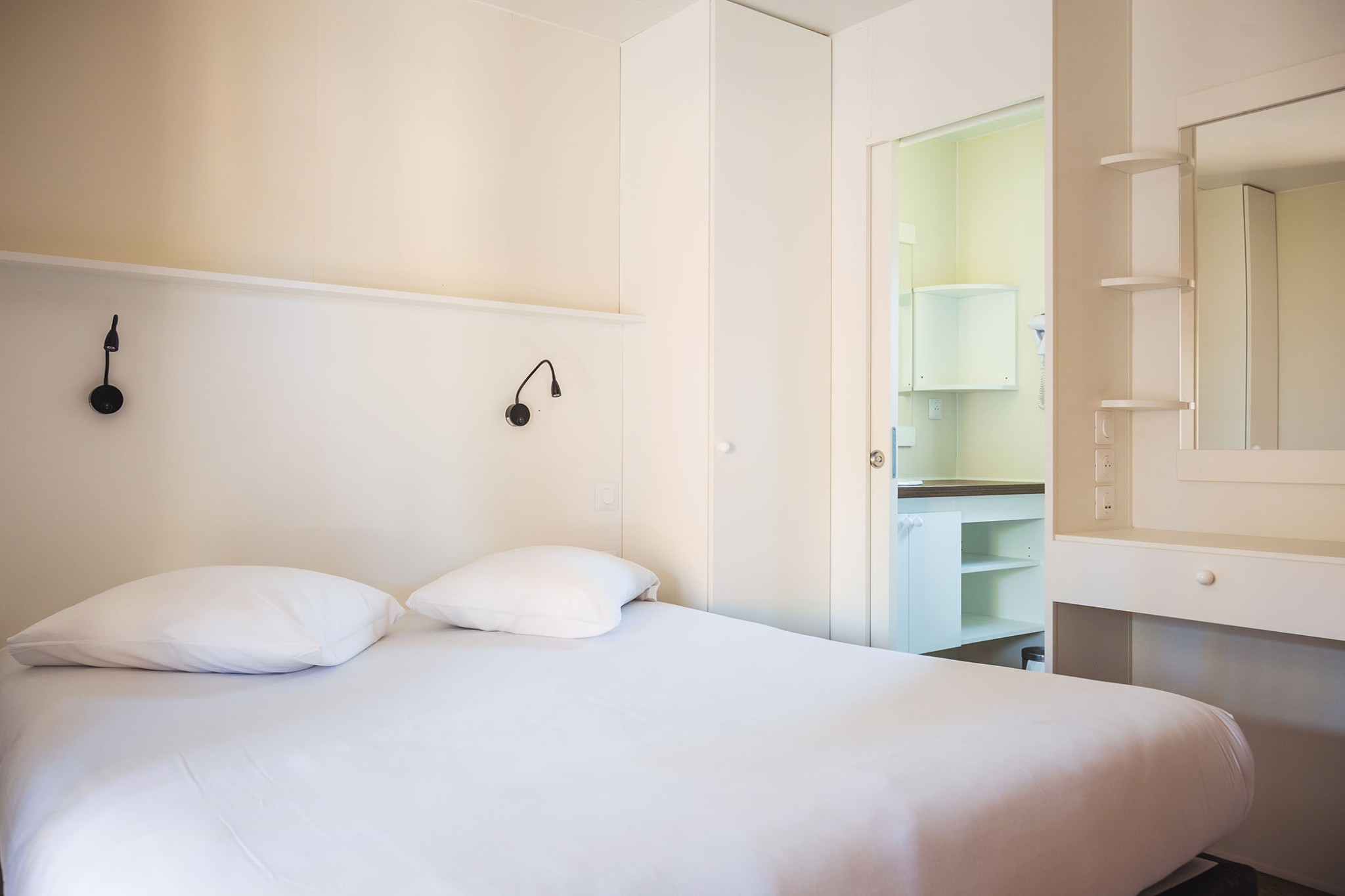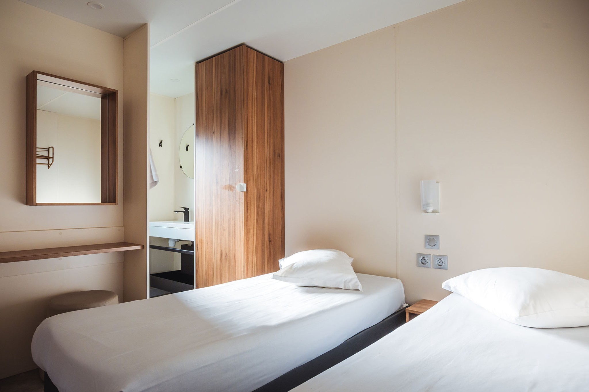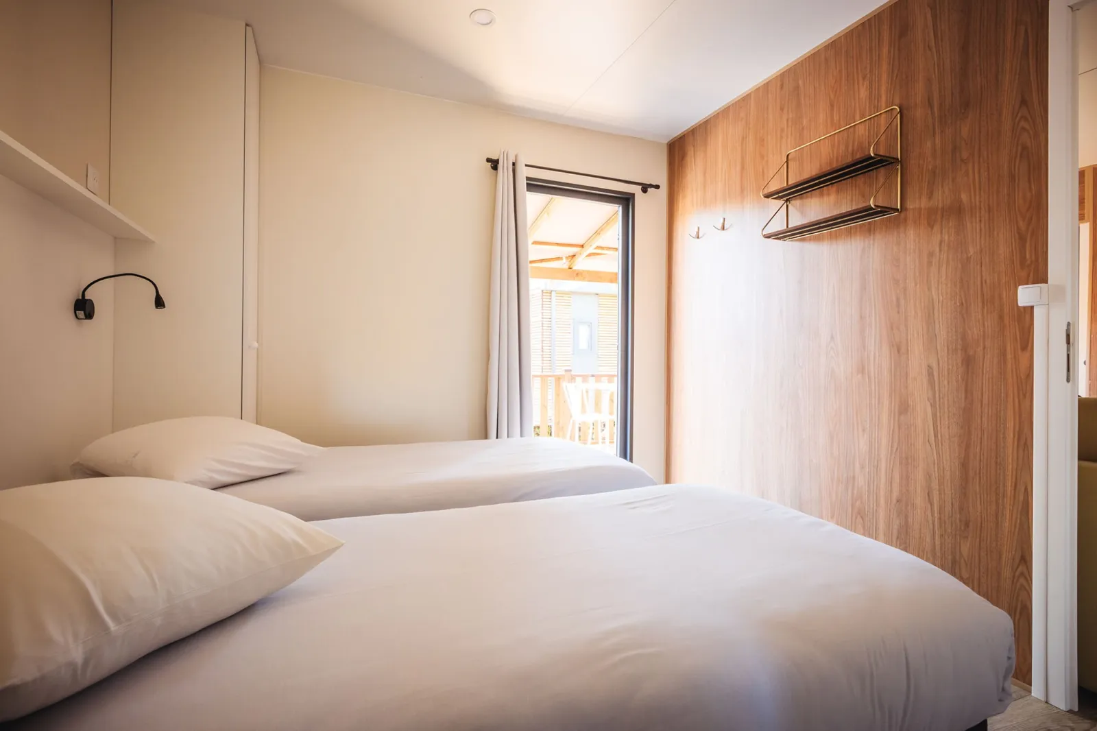 Idéal pour vous relaxer lors de vos vacances à la plage, le Lodge 2 chambres premium vous offre un confort exceptionnel. Avec une chambre équipée d’un lit double et une seconde chambre dotée de deux lits simples, cet hébergement répond à tous vos besoins.