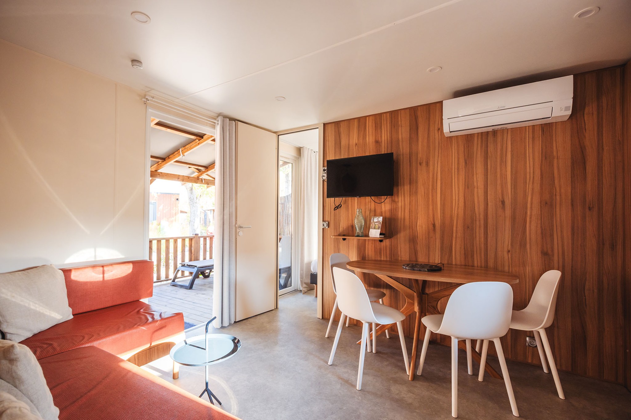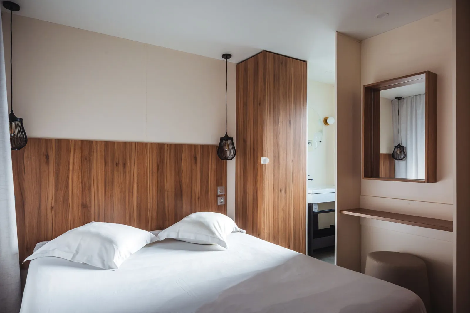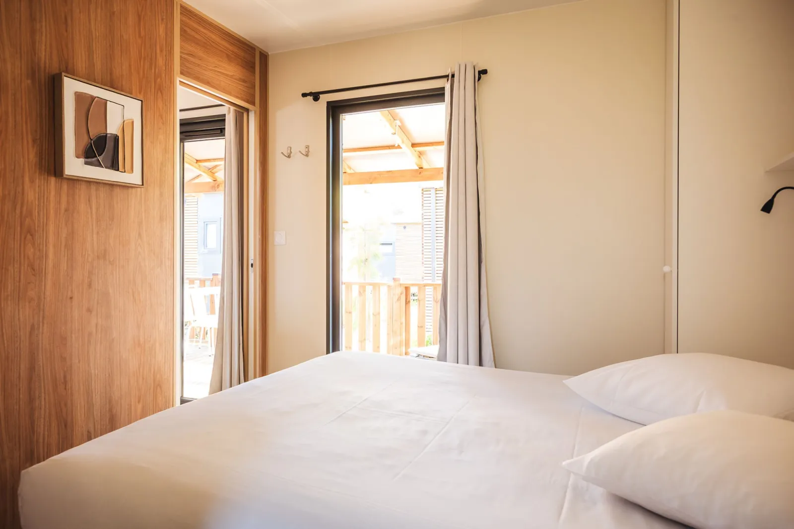Idéal pour vous relaxer lors de vos vacances à la plage, le Lodge 2 chambres premium vous offre un confort exceptionnel. Avec une chambre équipée d’un lit double et une seconde chambre dotée de deux lits simples, cet hébergement répond à tous vos besoins.