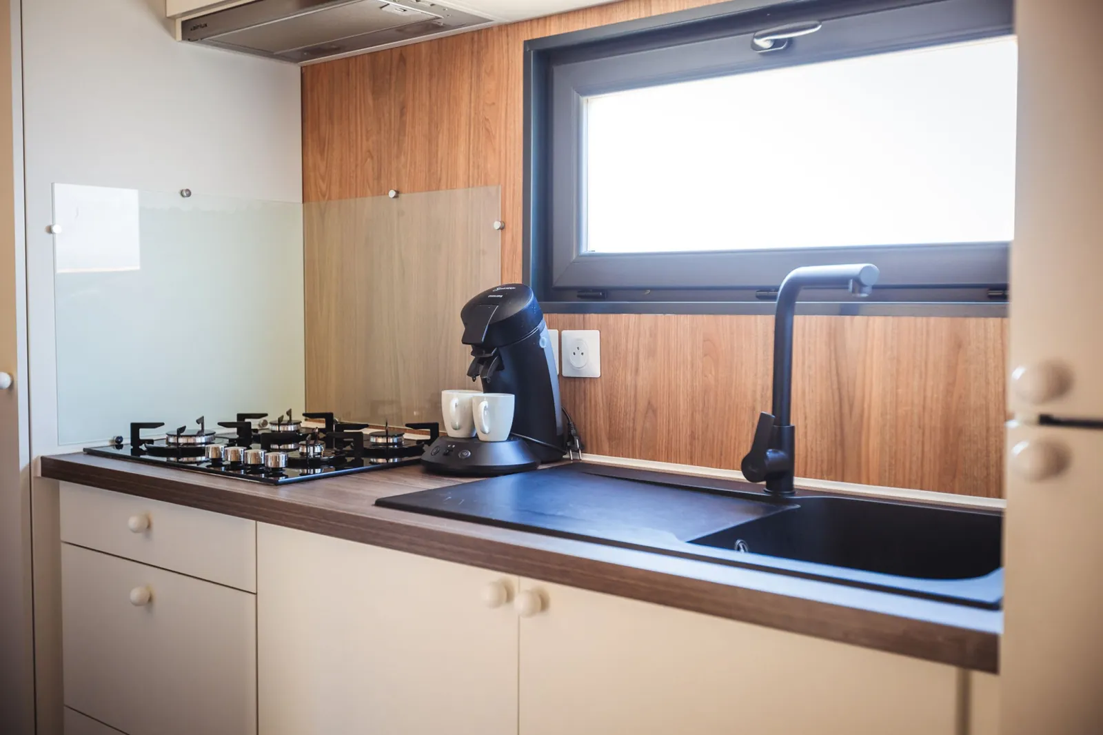 - Cuisine équipée (avec four micro-onde, machine à café Senseo)